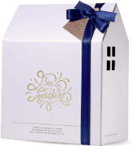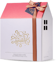 Happy Little House includes several exclusive wedding gift items packaged in a house-shaped box, which hints the importance of home.
